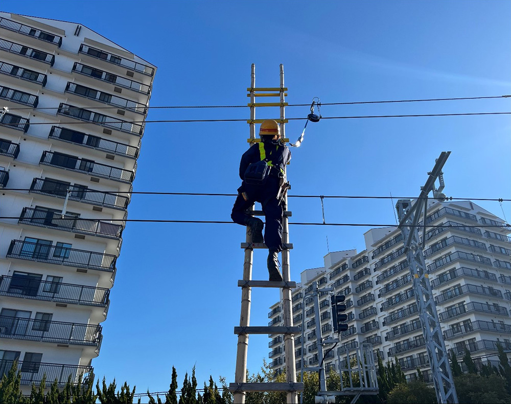 安全装置を使用しての昇柱作業