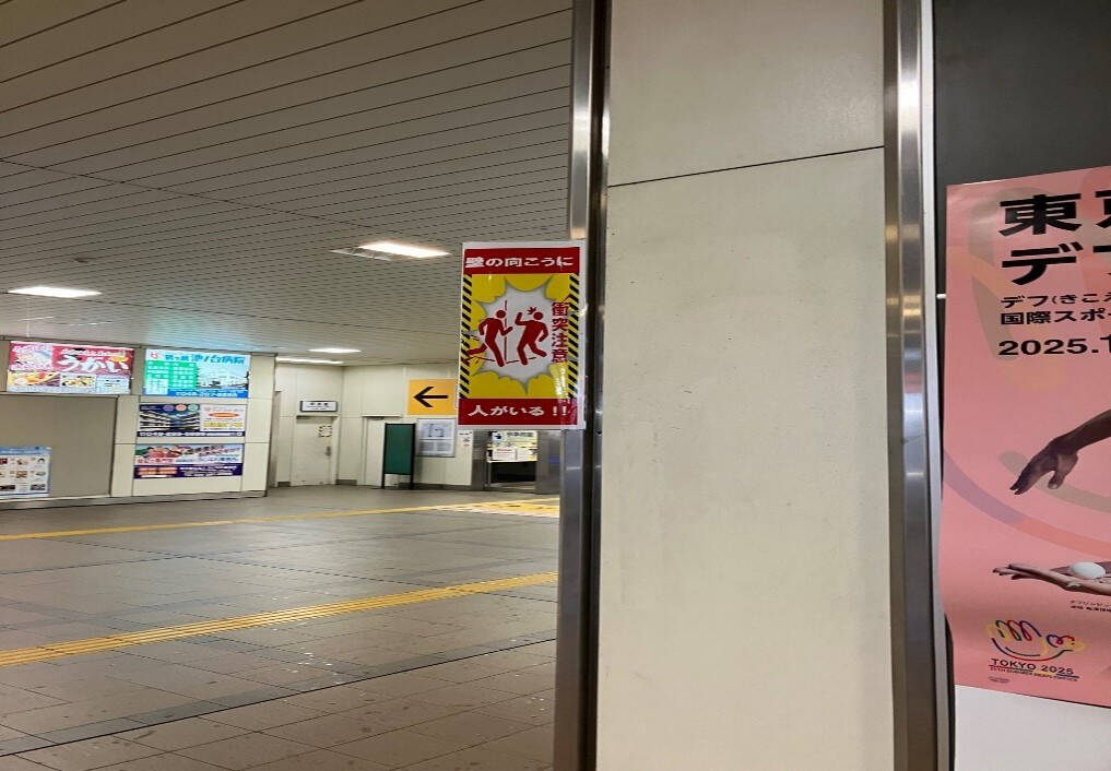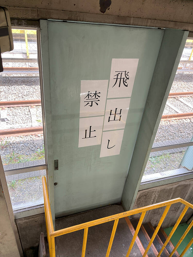 駅事務室からホーム出場に使用するドアの注意喚起