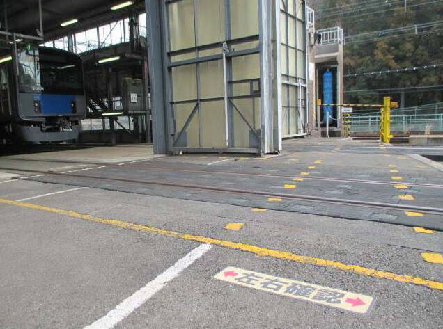 車庫内通路での指差確認喚呼