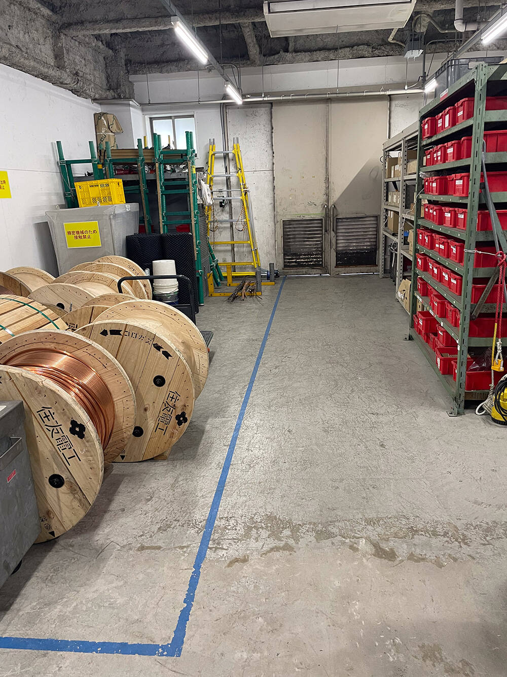 機器室の安全対策:滑り止めテープとタイガーロープの設置