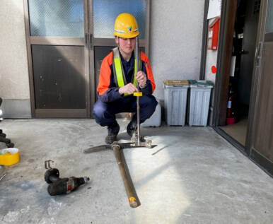 開止め金具を使用しての測定作業